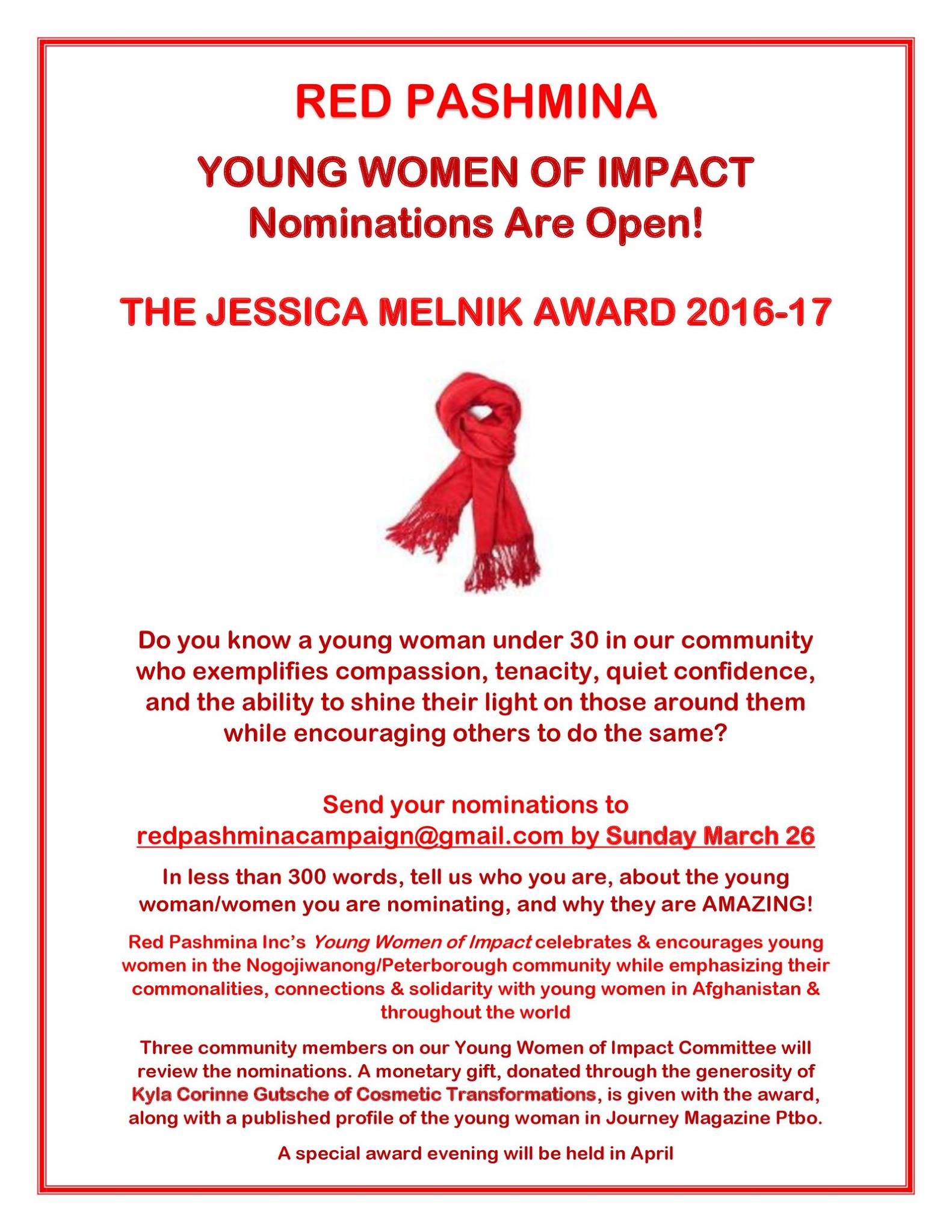 From its first campaign’s launch at the 2010 Santa Claus Parade, onward to yearly Red Pashmina Walks hosted by Right to Learn Peterborough; multiple Women of Impact series; collaborations with like-minded events, agencies and local vendors; Red Pashmina has been made possible by its home community.