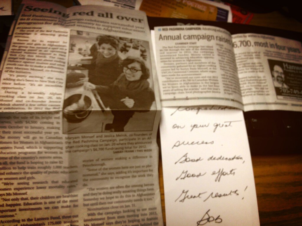 As we mark more than a decade since Red Pashmina’s beginnings, and while there is much to celebrate about the organization’s contributions in Afghanistan as well as the Peterborough and Canadian communities over the past decade, it is clear that our mandate now remains as needed as ever, and that our responsibilities are still firmly ahead.