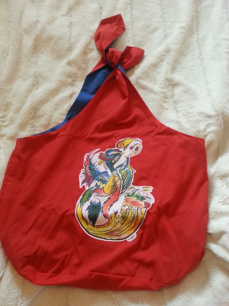This cotton tote bag – perfect for library books or lunches – was sewn by Peterborough newcomer Aquela Mohaqqeq from Afghanistan for Red Pashmina Inc. Her daughter, Mahsa Mohseni, also a refugee from Afghanistan, created the image on the tote bag and graciously donated her artwork.
